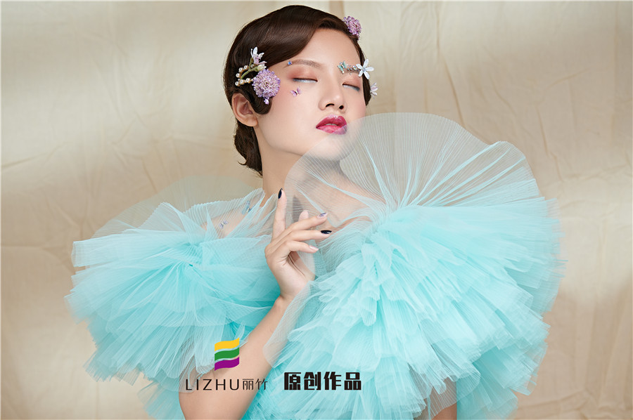 麗竹學(xué)校彩妝作品---氣質(zhì)名媛造型:藍(lán)色輕紗加上妝容花朵點(diǎn)綴,頭飾與發(fā)型的完美搭配,流淌出輕柔舒緩之美,簡(jiǎn)約自然的情緒態(tài)度。