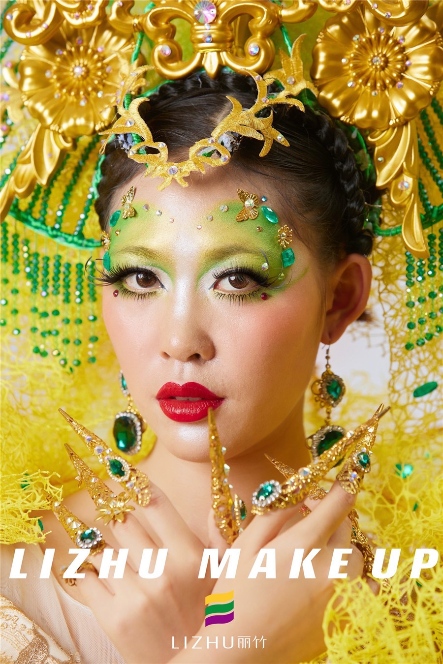 南寧化妝綠色創(chuàng)意妝容作品---綠野仙蹤:作品整體造型采用綠色與黃色相碰撞,突顯出了大氣神秘、富貴、極富時(shí)尚感的妝造氣質(zhì)。綠色的眼影色,則暈染展現(xiàn)出了女性的冷艷。視覺(jué)強(qiáng)烈的大紅唇,體現(xiàn)女性特有的妖嬈與性感,在利用金色裝飾品點(diǎn)綴妝容,使其襯托下整體視覺(jué)感更加突出。