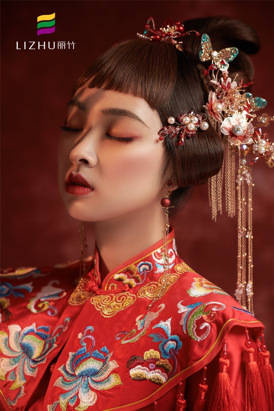 麗竹學(xué)校彩妝作品---中式秀禾新娘造型:蝶舞蹁躚,吉祥如意。極具東方魅力的色彩,妝造出獨(dú)特的國(guó)風(fēng)。一襲中國(guó)紅,端莊典雅,是千年沉淀下來(lái)的古韻悠長(zhǎng)。