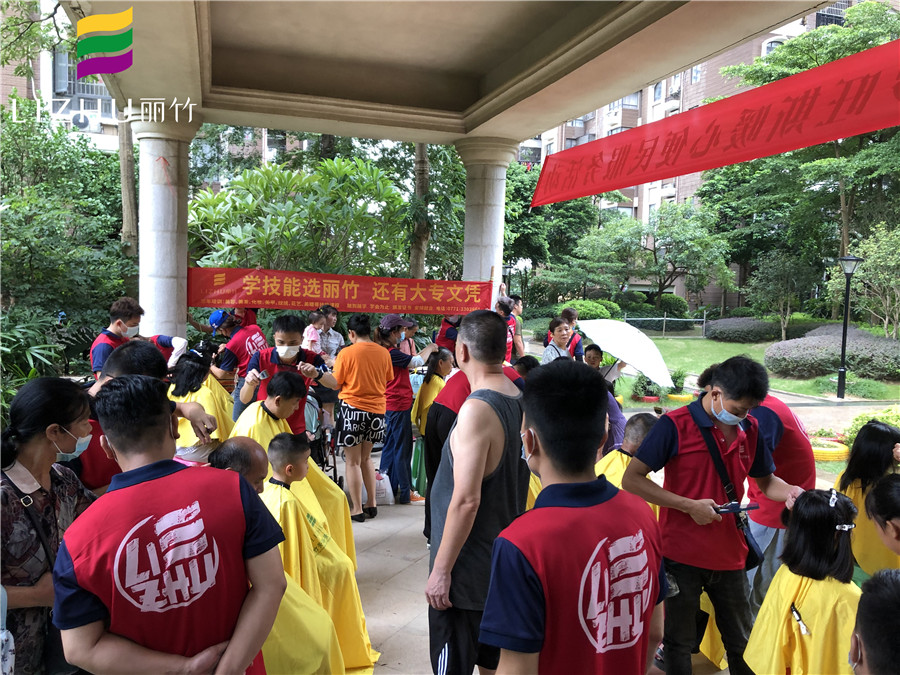 2021.08.11 廣西美發(fā)培訓(xùn)機(jī)構(gòu)組織學(xué)員到地亞莊園義務(wù)理發(fā)