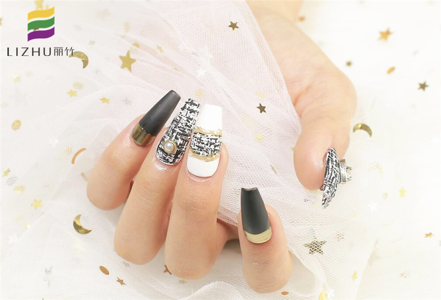 南寧美甲有哪些培訓學校?請看麗竹美甲學校作品::黑白色塊撞色美甲