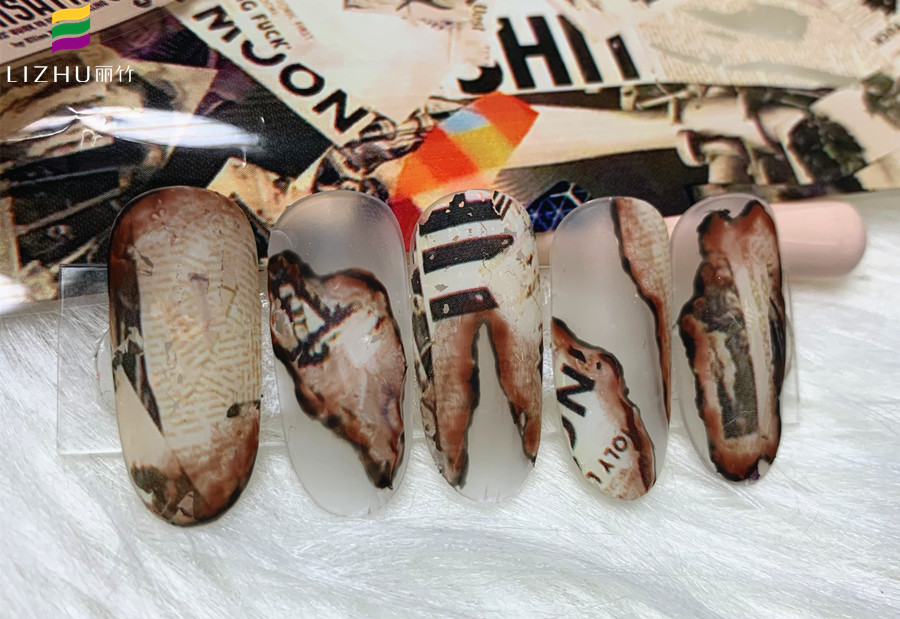 舊報(bào)紙美甲作品 | 廣西美甲師培訓(xùn)作品