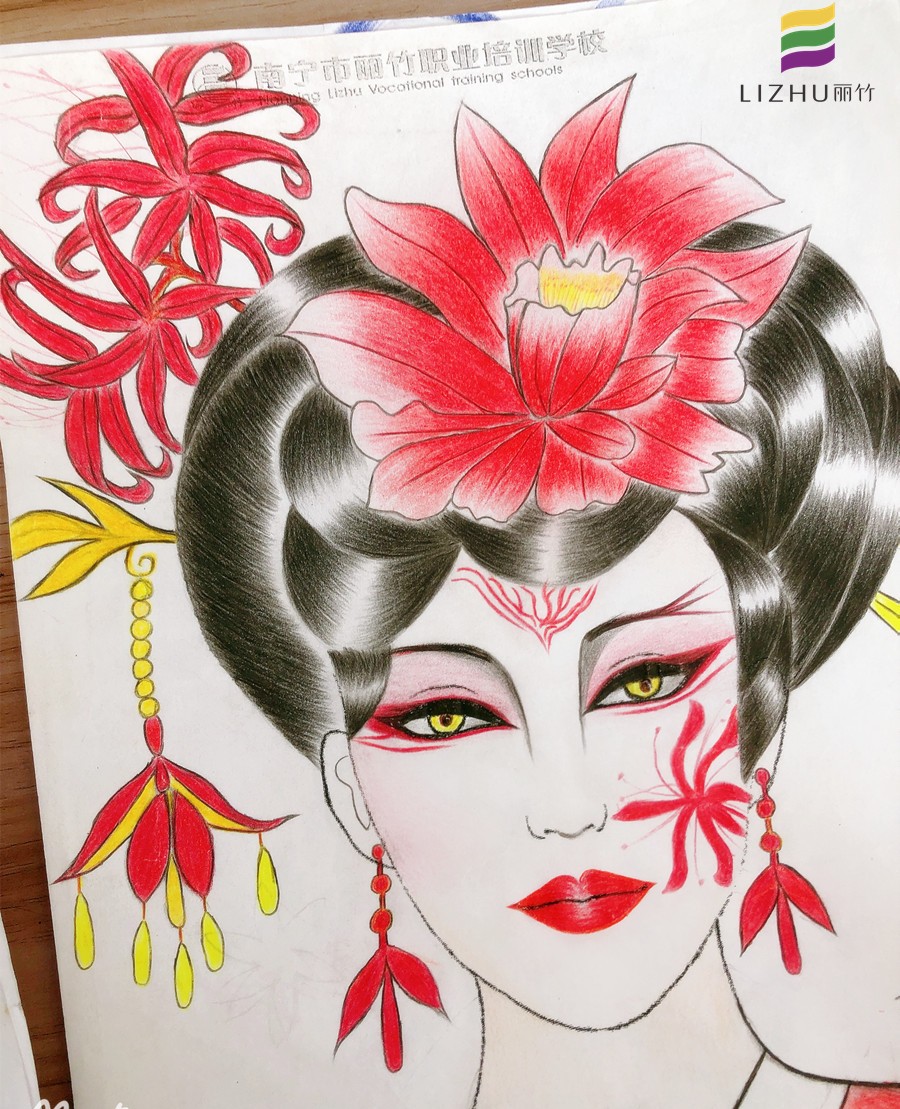 南寧哪里可以學(xué)化妝基礎(chǔ)?請看麗竹學(xué)校化妝基礎(chǔ)作品:紙妝美人圖(一)