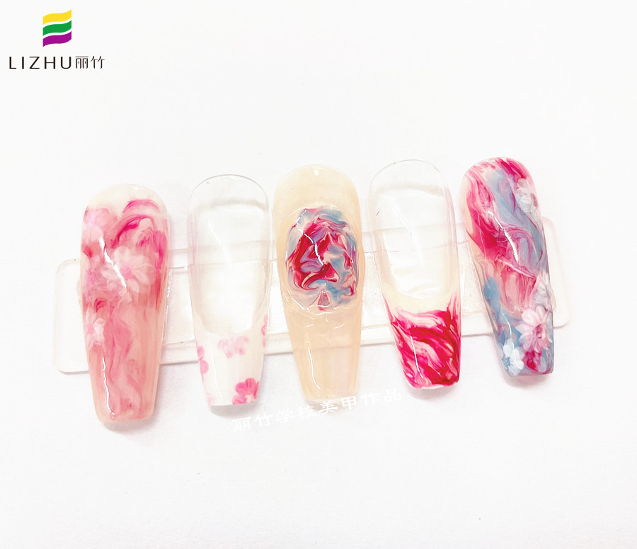 廣西南寧美甲師培訓(xùn)作品、美甲培訓(xùn)課堂分享:說起暈染液美甲,相信也是很多人的心頭所愛吧!看似亂做一團(tuán)的色彩,在專業(yè)的美甲技術(shù)手法下,就能華麗轉(zhuǎn)身變成夢幻迷離,層層變色的個性美甲啦!就是這么神奇,不信?來看看麗竹美甲學(xué)校做的兩款暈染液美甲在不同形態(tài)下的美吧!
