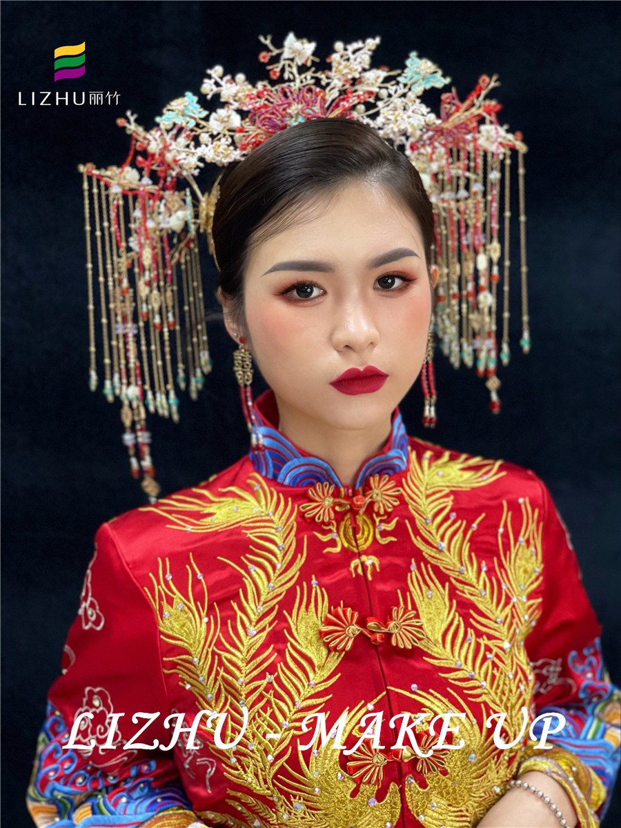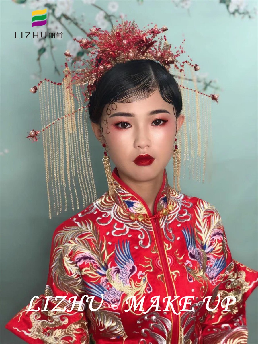 南寧學(xué)秀禾造型、南寧教美妝分享:在國人的心中,在重要的場合,中國紅永 遠是我們鐘愛的顏色。特別是在結(jié)婚的場合,隨處可見紅色元素,意寓著紅紅火火。而在眾多紅色新娘造型中,既有大氣風(fēng)范,又有清秀婉約的秀禾新娘造型更是深得民心。下面,就請看看南寧美妝造型學(xué)校(麗竹美妝造型學(xué)校)的秀禾新娘造型課堂作品吧!