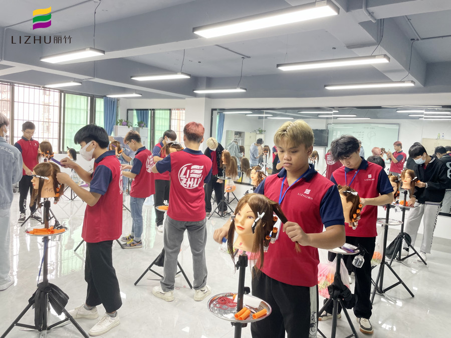 南寧美發(fā)班學(xué)員課堂頭模練習(xí)