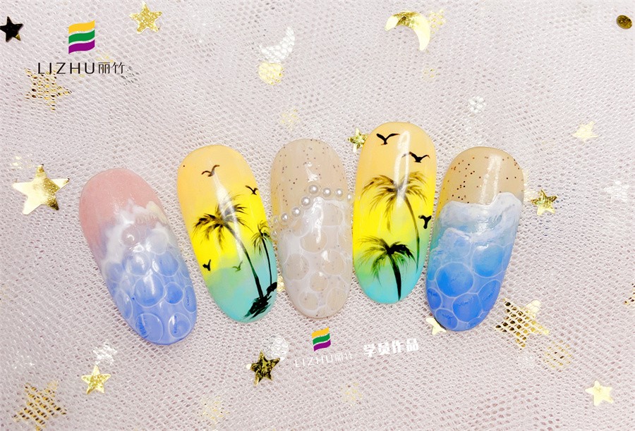 廣西哪里可以美甲進(jìn)修?請看麗竹美甲學(xué)員作品---泡泡海洋風(fēng)美甲
