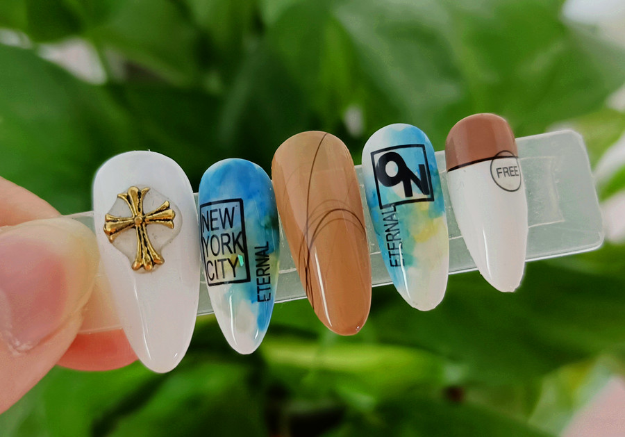 南寧學(xué)美甲款式:美甲是一門課時短,但可以在短期內(nèi)快速驗(yàn)收學(xué)習(xí)成果的專業(yè)。2周美甲理論作為基礎(chǔ),進(jìn)而將基礎(chǔ)運(yùn)用到實(shí)踐美甲款式作品的繪制中,45天的課程即可讓你成為可以獨(dú)立繪制各種時尚類型的美甲作品。下面,來看看剛剛升班首 次挑戰(zhàn)獨(dú)立完成作品的-南寧美甲學(xué)校實(shí)訓(xùn)學(xué)員們繪制的作品吧!