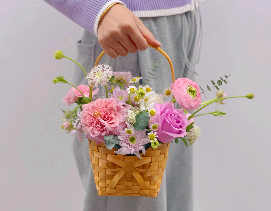 南寧鮮花培訓(xùn)---麗竹花藝培訓(xùn)班作品:韓式手提花籃