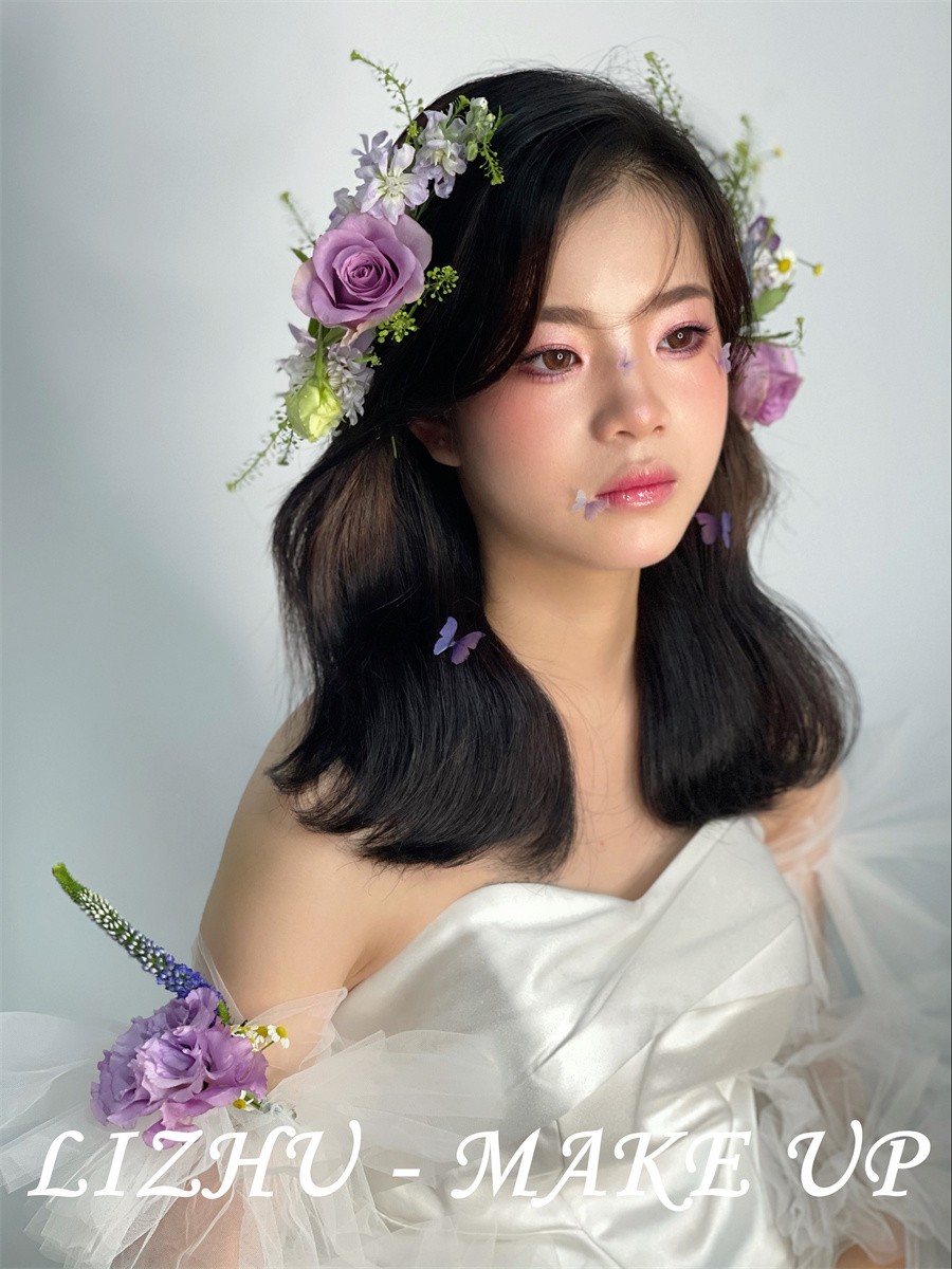 南寧學(xué)新娘造型哪里好?請看麗竹化妝學(xué)校作品---清新鮮花新娘(三)
