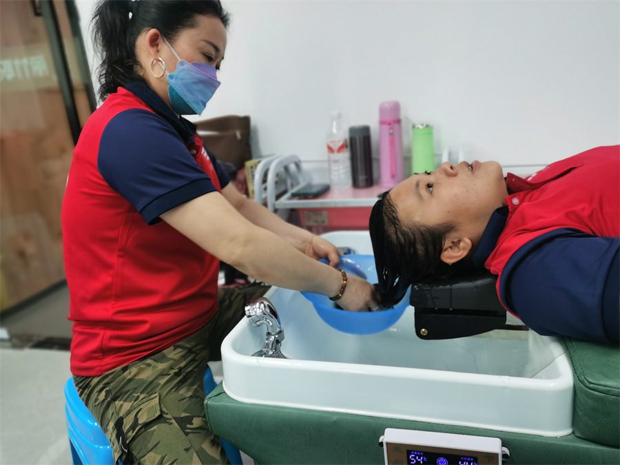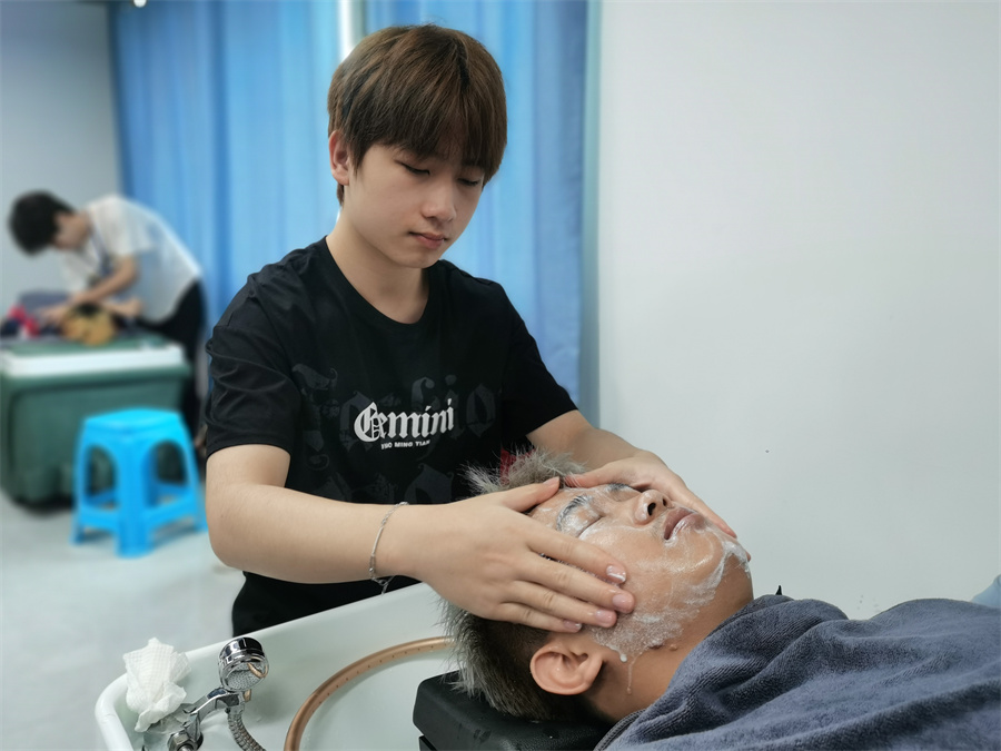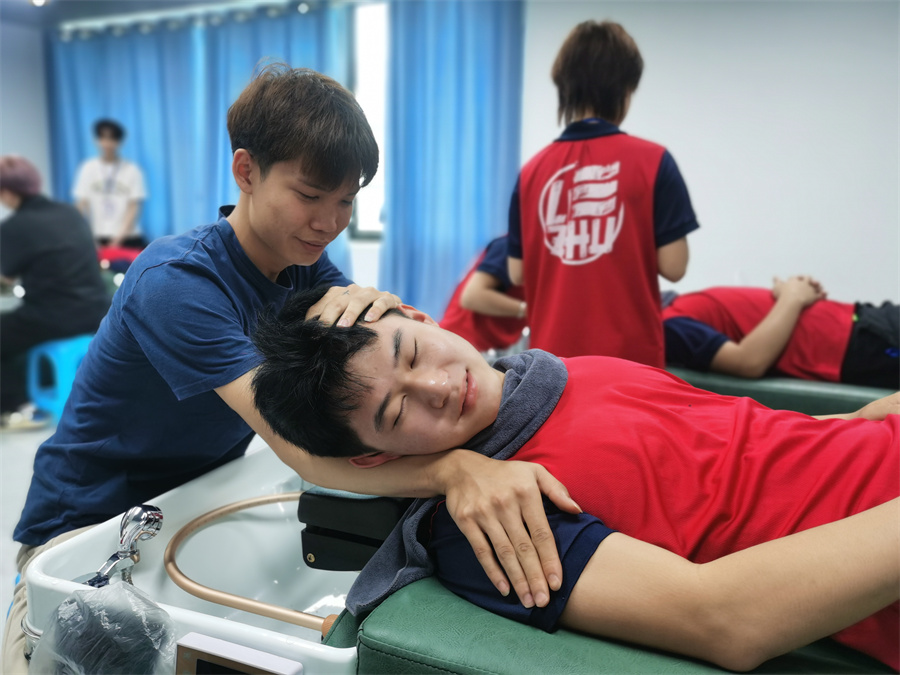 南寧學洗頭、南寧美發(fā)洗頭培訓:很多人在沒有來到南寧美發(fā)專業(yè)學校進行學習的時候,都覺得洗頭其實是一件很簡單的事情。畢竟,洗頭我們基本每天都在進行。但真正的洗頭并不是我們日??吹胶筒僮鞯哪菢印D敲?,美發(fā)洗護學什么內容?不如就和我們一起走進南寧美發(fā)洗護培訓班課堂實訓,看看學員們都在進行哪些洗護練習吧!