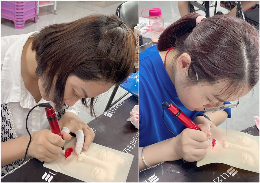零基礎(chǔ)學(xué)紋繡在廣西、廣西紋唇教學(xué):經(jīng)過前面對(duì)眉眼唇的理論以及紙上練習(xí),廣西眉眼唇學(xué)校-麗竹眉眼唇學(xué)校的同學(xué)們現(xiàn)在進(jìn)入到了仿皮紋唇練習(xí)。廣西紋繡培訓(xùn)-麗竹國際紋繡大師班本期課程已經(jīng)進(jìn)入尾聲,同學(xué)們也即將結(jié)束在仿皮上進(jìn)行眉眼唇的練習(xí),讓我們共同期待同學(xué)們接下來進(jìn)入到紋繡真人實(shí)操的表現(xiàn)吧!