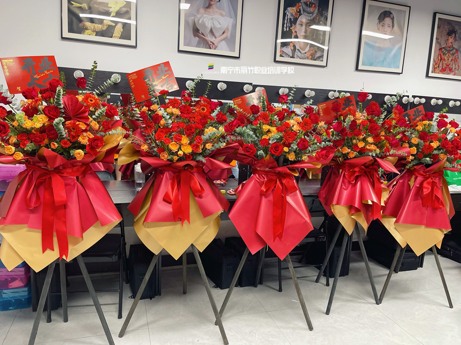 零基礎(chǔ)花藝教學(xué)、南寧哪里可以學(xué)花藝:南寧花藝培訓(xùn)班就為大家展現(xiàn)幾款同學(xué)們的花籃作品吧---網(wǎng)紅開業(yè)花籃!在遵循傳統(tǒng)花藝風(fēng)格的前提下,南寧花藝造型學(xué)校-麗竹花藝造型設(shè)計(jì)班提倡創(chuàng)意教學(xué),立足將傳統(tǒng)與創(chuàng)意花藝技巧相互結(jié)合,教授款式時(shí)尚新穎。如果你想在南寧學(xué)花藝插花,歡迎關(guān)注麗竹學(xué)校獲取新一期開班信息。