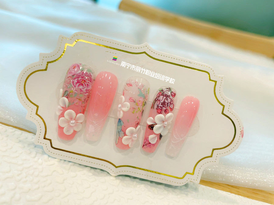 零基礎(chǔ)美甲教學(xué)、南寧培訓(xùn)美甲職業(yè):當(dāng)彩繪碰上雕花,是比出勝負(fù)誰更勝一籌?還是相互陪襯碰撞新的火花?南寧美甲款式造型班的同學(xué)們顯然已經(jīng)用他們的作品給出了答案。