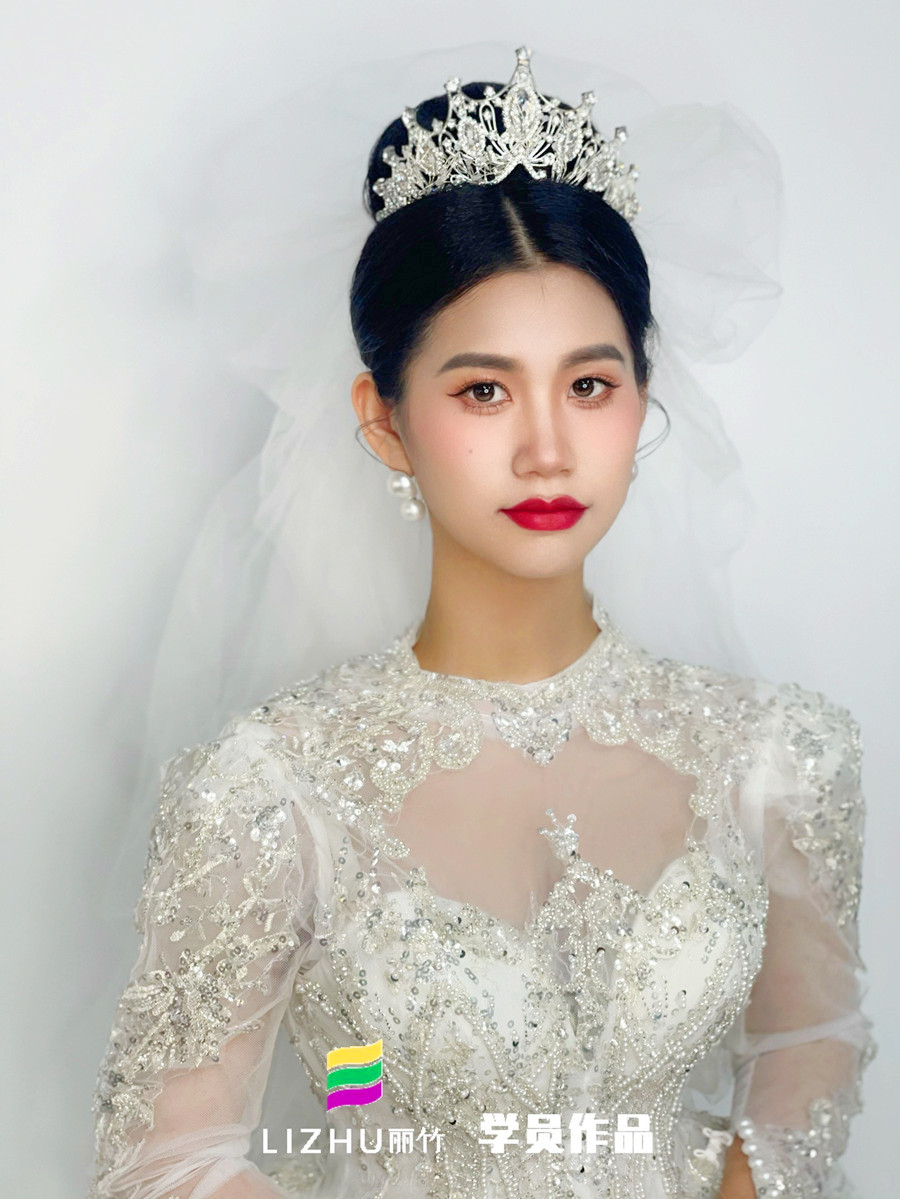 廣西新娘化妝培訓(xùn)、廣西化妝新娘短期班(麗竹新娘彩妝)作品---婚禮新娘造型:赫本風(fēng)復(fù)古氣質(zhì)高盤(pán)發(fā),溫柔透凈妝容素雅精致。珍珠鉆石服飾與配飾,打造永恒的經(jīng)典之美,讓新娘美出新的高度。想知道廣西哪里可以學(xué)新娘化妝?或是想知道廣西新娘化妝培訓(xùn)哪家好?廣西新娘化妝學(xué)校-南寧市麗竹職業(yè)培訓(xùn)學(xué)校(麗竹學(xué)校)化妝專(zhuān)業(yè),業(yè)實(shí)力與高口碑...