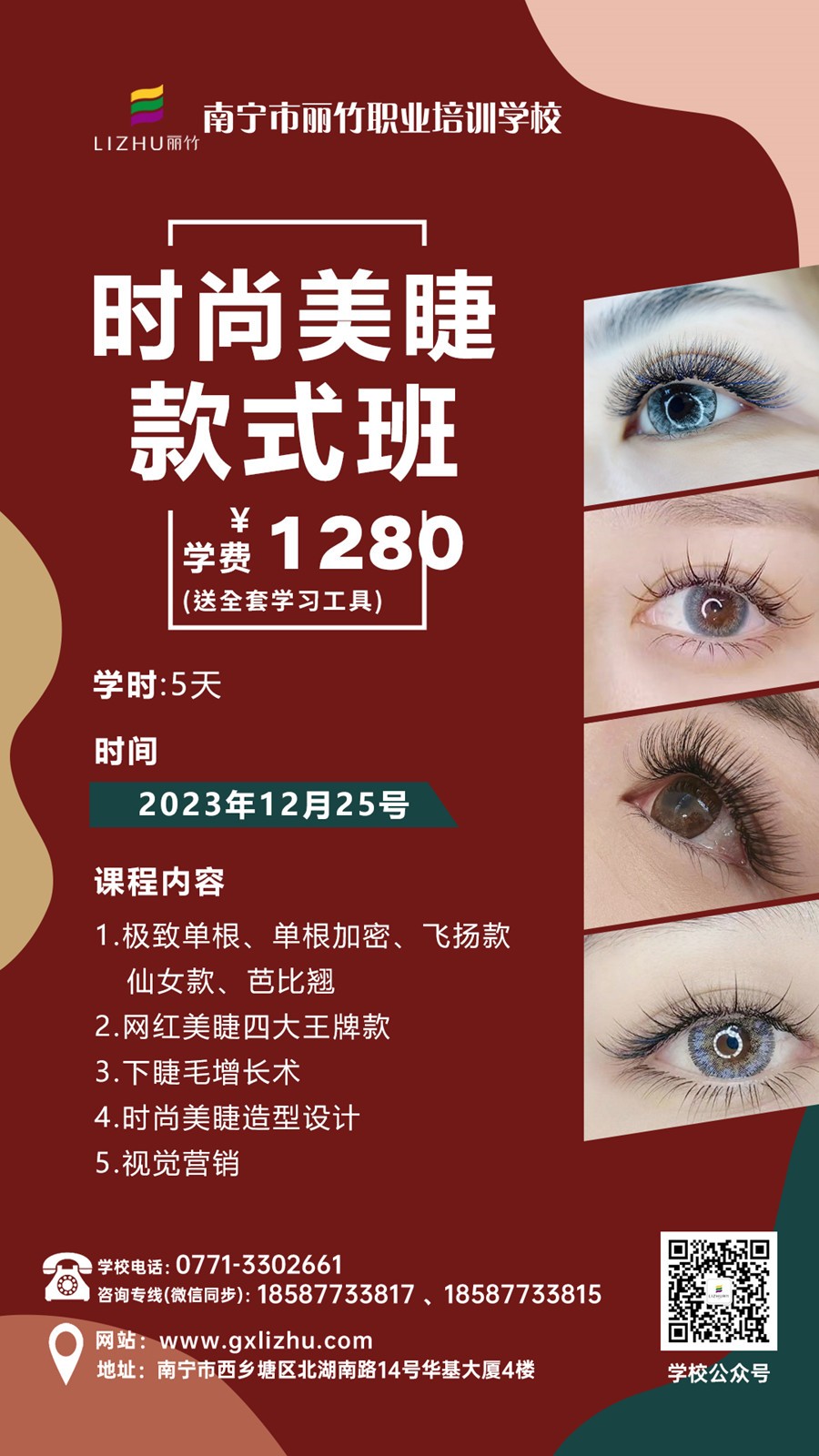 如果你是上述的人群之一,那么你就是適合學(xué)習(xí)美睫的人群啦!所以,千萬不要錯過學(xué)時短,學(xué)費親民,易上手,引流拓客快速的美睫項目啦!南寧專業(yè)培訓(xùn)美睫師(麗竹時尚美睫款式班)將于12月25日正式開班,現(xiàn)在報名不僅可以享受親民學(xué)費,還能送全套學(xué)習(xí)工具哦,把握現(xiàn)在趕緊報名吧!