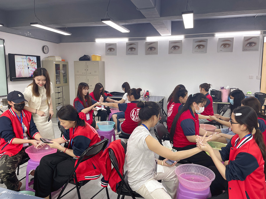 因為只有一雙健康的雙手,才能讓美甲款式的精美度放大化。下面,就讓我們通過南寧美甲技術(shù)培訓(xùn)學(xué)校(麗竹美甲技術(shù)培訓(xùn))里同學(xué)們正在進(jìn)行的手部護理實操,了解下美甲手部護理的好處吧。